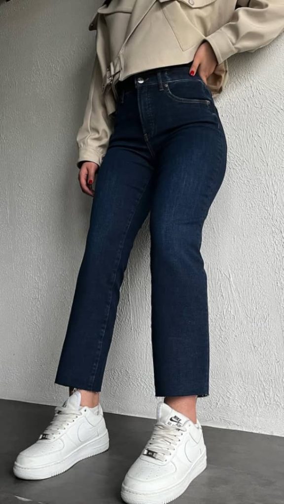 شلوار جین زنانه مدل بوت کات رنگ سرمه ای تا سایز بزرگ