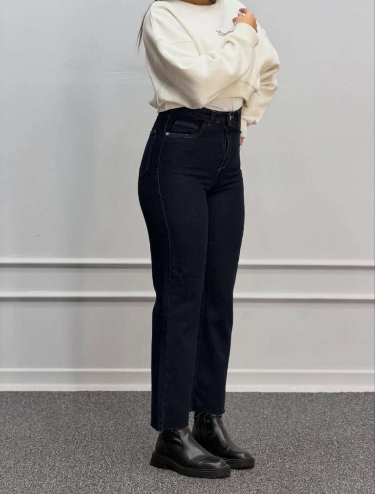 شلوار جین زنانه مدل بوت کات رنگ سرمه ای تا سایز بزرگ