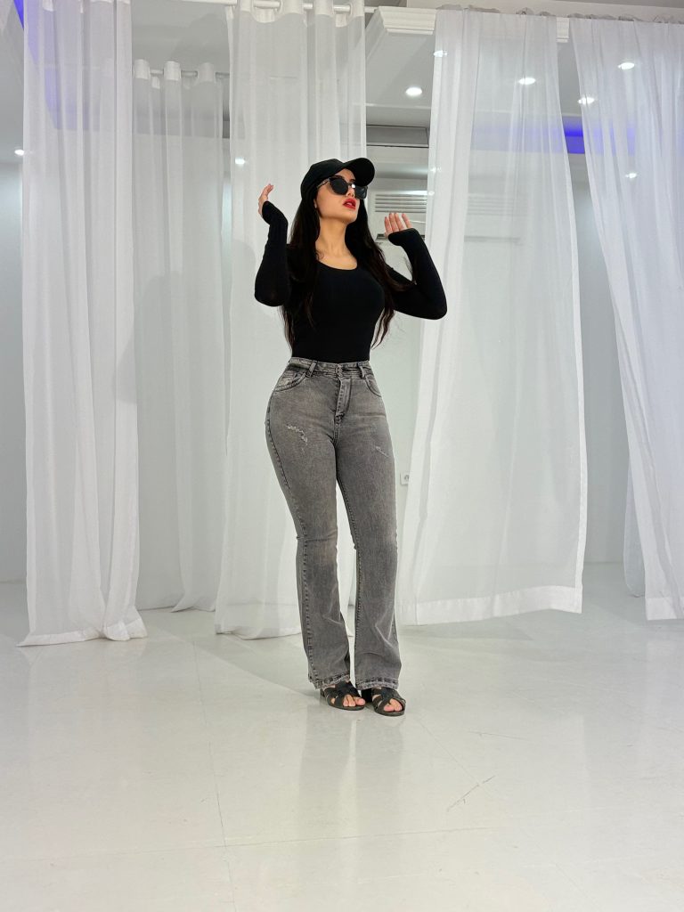 شلوار جین زنانه کشی مدل بوت کات رنگ طوسی