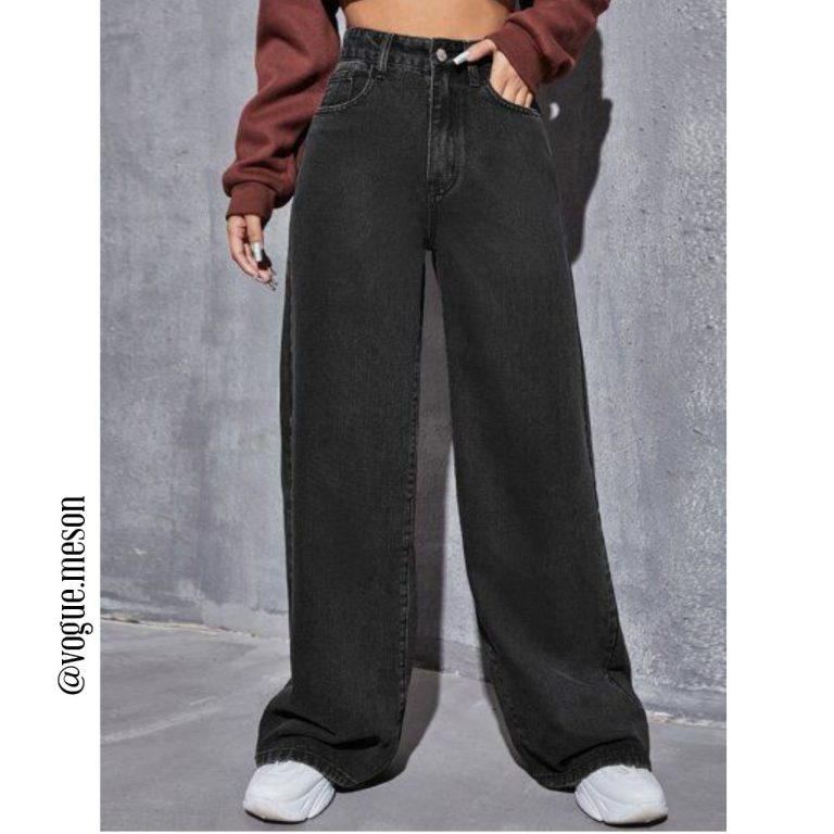 شلوار جین زنانه مدل مام فیت رنگ زغالی
