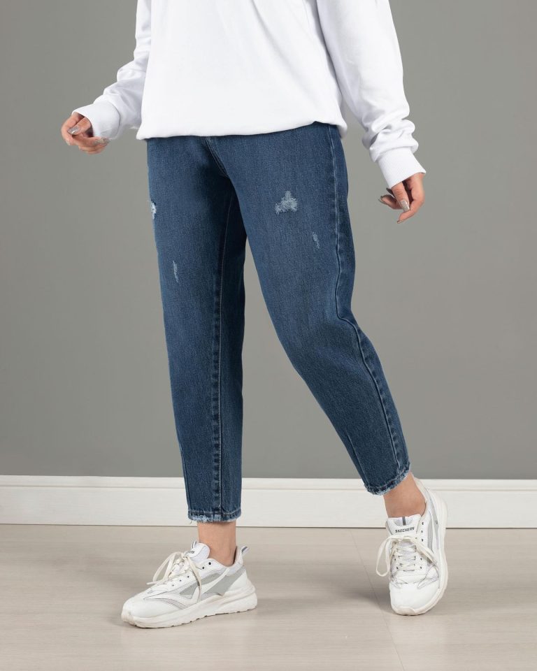 شلوار جین زنانه مدل مام فیت رنگ آبی تیره