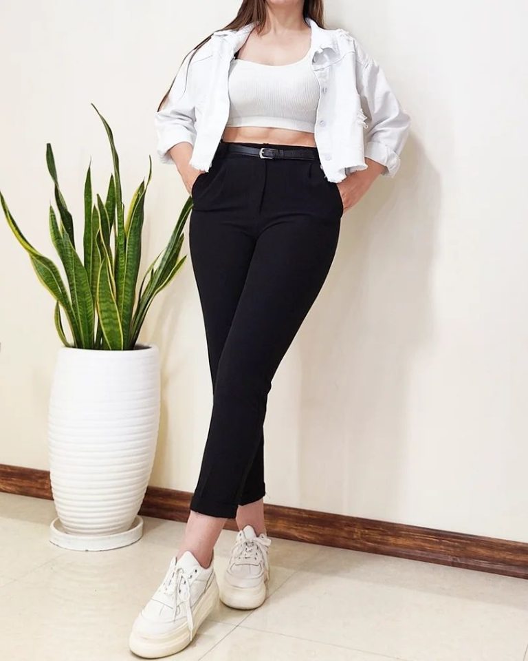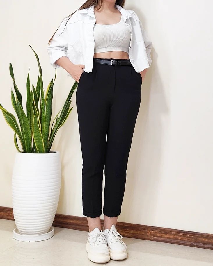 شلوار جین زنانه پارچه ای کرپ مدل مام فیت رنگ مشکی