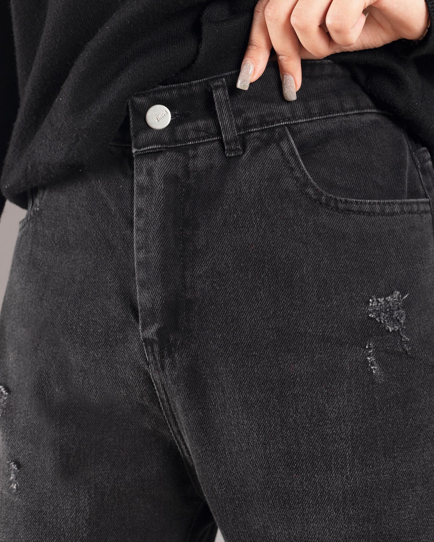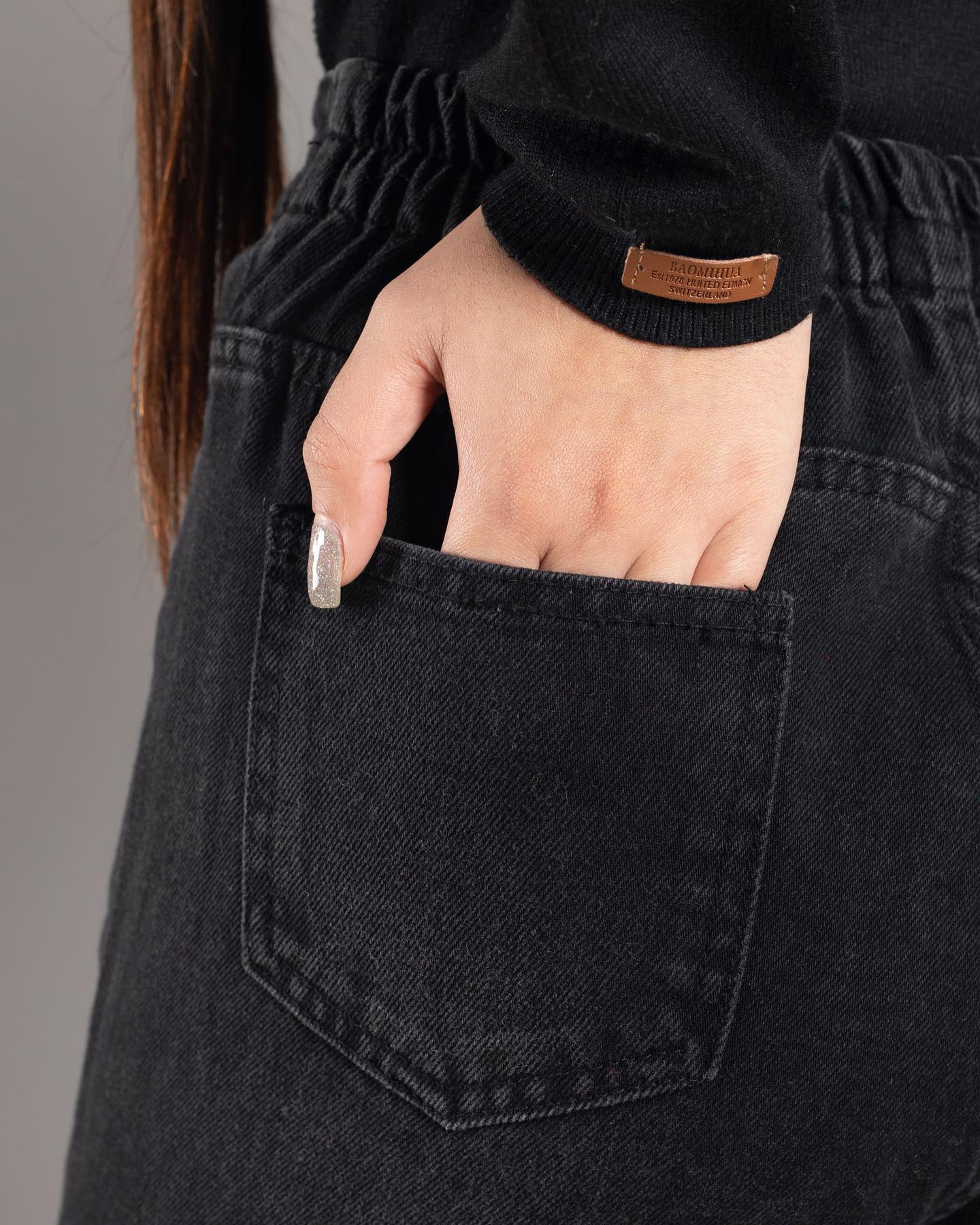شلوار جین زنانه مدل مام فیت رنگ زغالی
