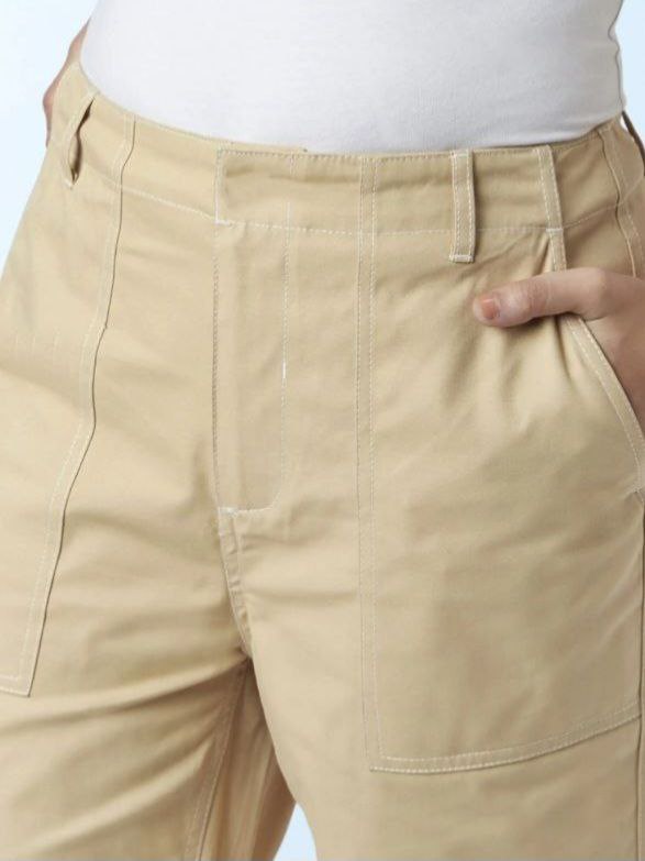 شلوار کتان زنانه مدل مام استایل رنگ کرم سایز بزرگ