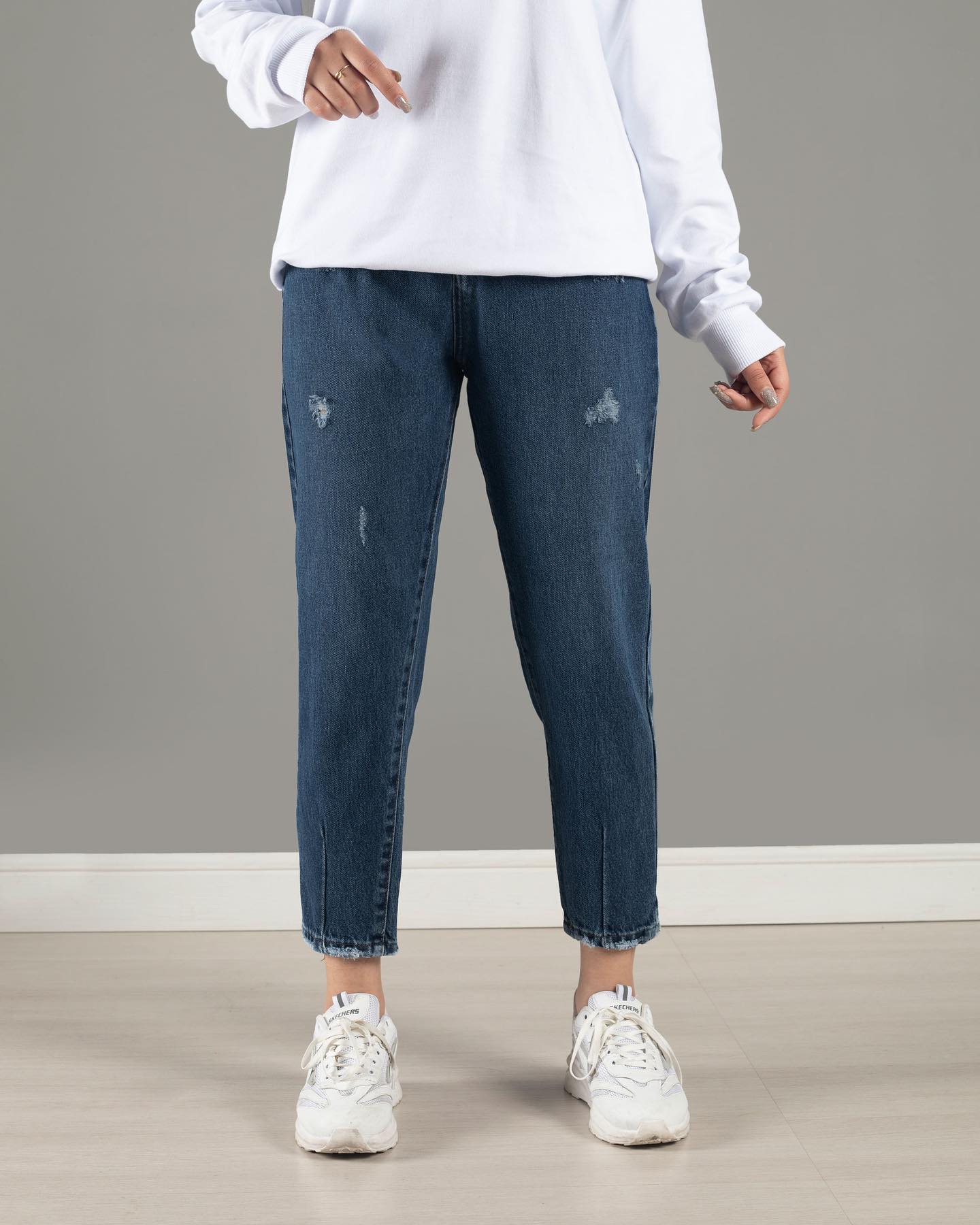 شلوار جین زنانه مدل مام فیت رنگ آبی تیره