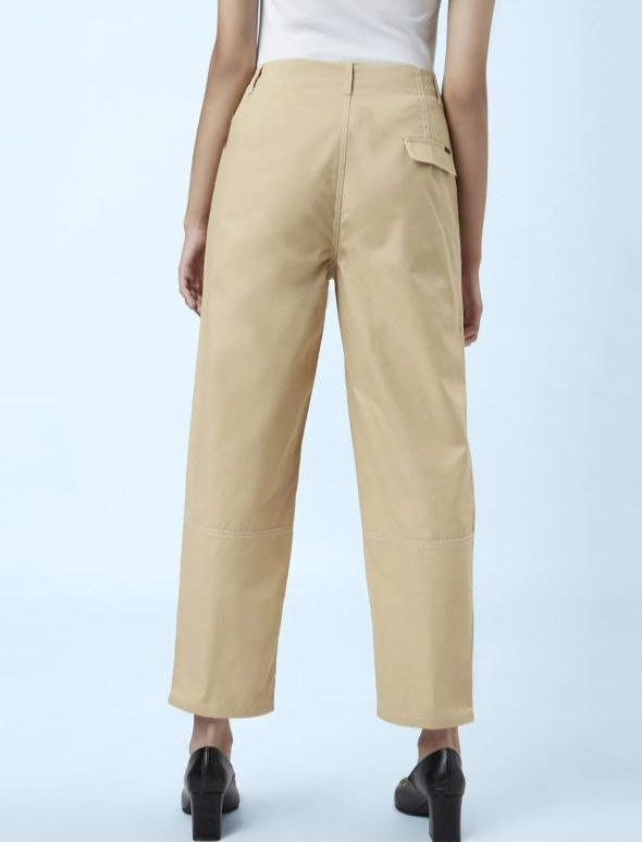 شلوار کتان زنانه مدل مام استایل رنگ کرم سایز بزرگ